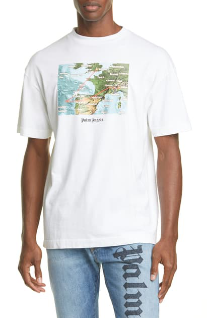 Shop Palm Angels White Lost Flight Map-Print T-Shirt for ...